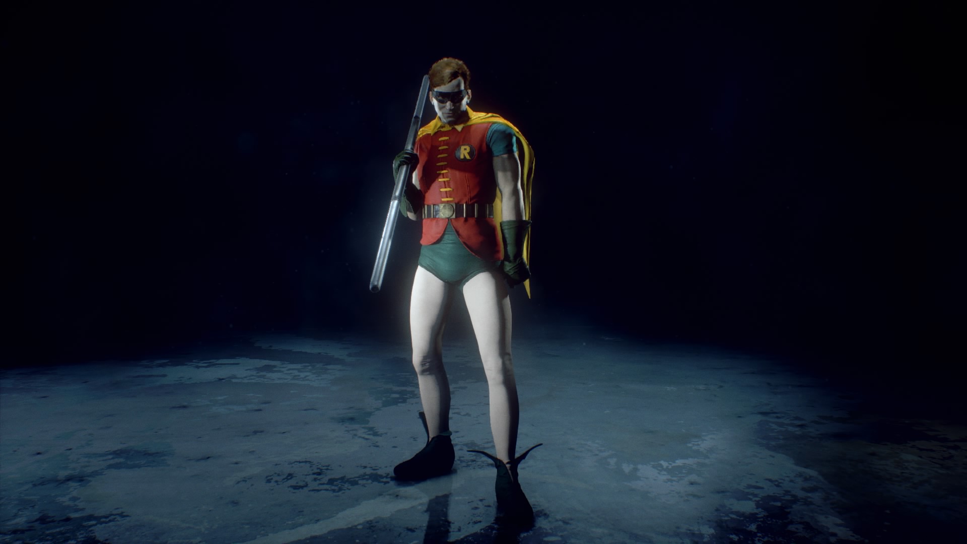 - This effect is the most notifiable in Red Son costume in Origins, Flashpoint costume in Knight, and First Appearance in both. In addition, Robin's classic TV series suit seems to suffer from this as well.