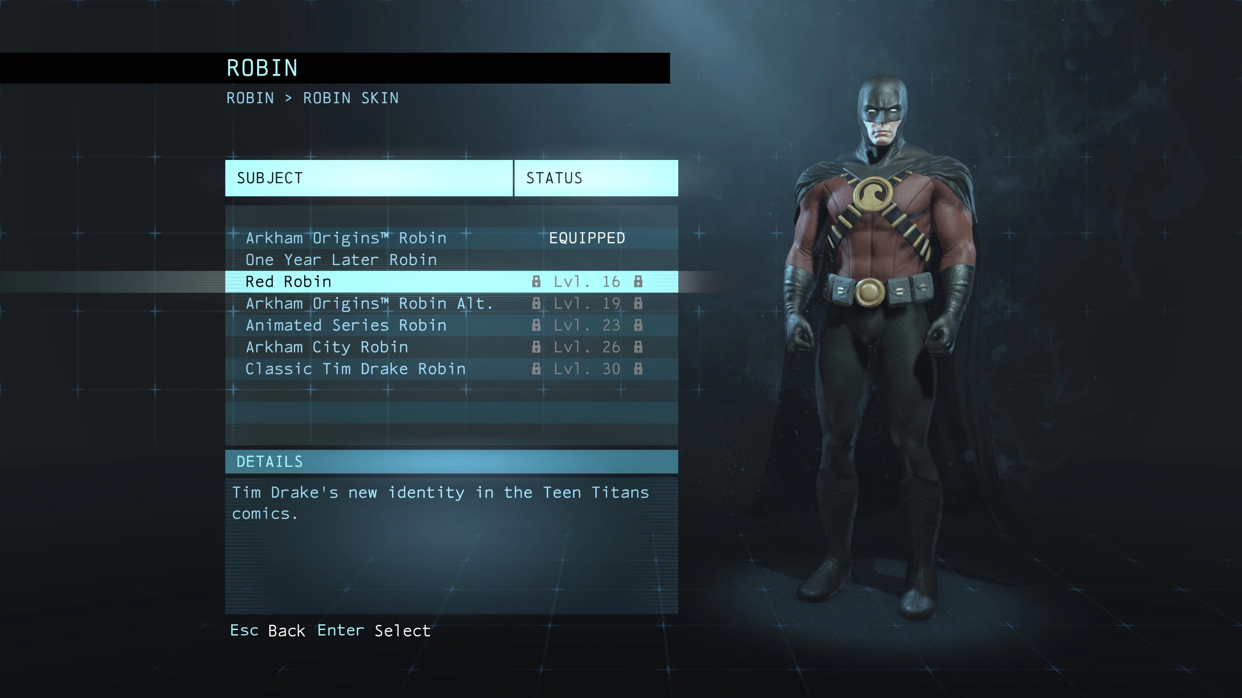 Alternate Character Skins in the Arkham games are available both by unlocking story beats as well as by obtaining various Downloadable Content packs and merchandising offers.