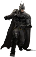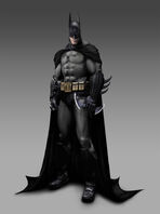 - Batman's design was based on the art of Jim Lee; he drew Batman as a strong, muscular character who could plausibly handle himself in a fight. The costume composed of black and dark gray was based on the character's modern outfit.