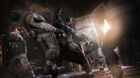 After entering the Bowry, Batman noticed the bat signal in the distance and headed to it, dealing with any Rat on the way. He made a slight detour to the Jezebel guns store and felt with a few Rats before informing Alfred to let Gordon know to get the guns off of the streets. After entering the gun store and rooftop and dealing with a few armed Rats, Dr. Leslie Thompkins contacted Batman asking if she and Dent would expect him at the Courthouse for a fundraiser for crime prevention, but Batman said to give Harvey his best. After leaving the Rooftop, he met with Gordon on the Rooftop of a GCPD task force office. After heading into the office, Batman found district attorney Dent had been helping Gordon to attempt to unveil the identity of the Rat King.