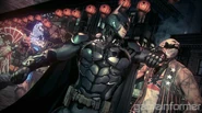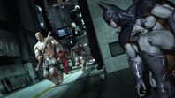 With Black Mask taken care of, Batman returned to the Administration Building to stop the Joker and rescue the Warden. He was intercepted by Deadshot, who had made a deal with all three bosses, tripled his commission, and was eager to kill Batman for the great prize. After he defeated the assassin, Batman rescued Joseph, then proceeded to his office, and confronted the Joker. After taking down the Clown Prince of Crime, Batman acquired the set of codes that he needed to shut down the gas that was about to be released on the hostages, but noticed that the Arkham Wing's air supply hadn't been cut off at all, contrary to what Catwoman had told him.