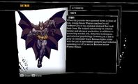 - To illustrate his youth and inexperience, Batman's suit in Origins had heavier armor, that was designed to appear assembled rather than manufactured. He later switched to the more flexible and lightweight suit that was seen in Arkham Asylum and Arkham City that still provided bullet protection. His final Batsuit was even lighter and not only allowed Batman to move at his full speed with full range of motion finally while providing great protection from bullets and impacts with liquid armor it also provided many other functions, such as allowing him to survive extreme G Forces, lessen and absorb the blows of impacts and able to redirect that absorbed power back to his opponents, and also compressed around wounds if his suit was actually punctured. As Batman got more experienced his suits became lighter and offered less and less protection; favoring speed, mobility and while relying on his own experience and skill while offering great protection to impacts and moderate protection from bullets although is vital organs were still heavily armored. His later suits and gadgets showed a rapid shift to high technology to assist him in the field by enabling him to do things he normally couldn't do as well as monitoring his vital signs among many other things. His earlier suits and gadgets while were low to non existent tech offered amazing protection to impacts and bullets to his entire body but slowed him down considerably.