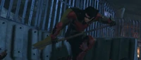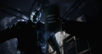 Once at the hotel, Batman hacks into the security systems and uses them to spy on the meeting, witnessing the death of Electrocutioner via being thrown out of window. While Firefly flies off to tend to his own plans, Bane states that he intends to wait for Batman using the Joker as bait. Batman takes Electrocutioner's Shock Gloves and uses them far more effectively than the so called assassin.
