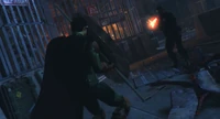 Much of the gameplay takes place on the streets of Gotham City itself. There are some areas that players will find familiar, such as Old Gotham, but they will be different at the same time, as events haven't unfolded yet that transformed the landscape. Arkham City will not have been built yet; Jezebel Plaza is a bustling shopping hub; dock areas still exist that were later swallowed by the great flood. Other locations such as Park Row and the Bowery return. Docked there in the Amusement Mile is The Final Offer, the giant floating headquarters of the Penguin. His illegal arms trade is unhindered by the police, but Batman will find him and face off with him.