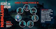 Harley Quinn commits noisy petty crimes in Gotham until she is arrested and returned to Arkham Asylum, at which point she stages a distraction by arguing with and apparently attempting to murder her ex-lover the Joker. This distraction allows the Suicide Squad to successfully infiltrate Arkham Asylum in a variety of disguises, and proceed smoothly with their mission until Batman arrives. Batman and Black Spider duel, and Batman defeats Black Spider and switches costumes with him, joining the Suicide Squad without their knowledge. Killer Frost locates the Riddler, but decides against killing him when she learns the reason she was sent to snuff him out: the Riddler knows how to disable the bombs implanted in members of the Suicide Squad. The Joker escapes his cell, which was weakened by Harley Quinn's earlier assault, and frees all the Arkham Asylum inmates.