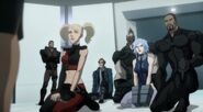 The Riddler is rescued from a black ops assassination and returned to Arkham Asylum after being captured by Batman. Amanda Waller then recruits criminals Black Spider, Captain Boomerang, Deadshot, Harley Quinn, Killer Frost, KGBeast, and King Shark (the Suicide Squad) to break into the hospital and finish the job. They are forced to comply by means of bombs surgically implanted at the base of their spines; KGBeast, who believes the bombs are a bluff, walks out on Waller and is killed as an example to the others.