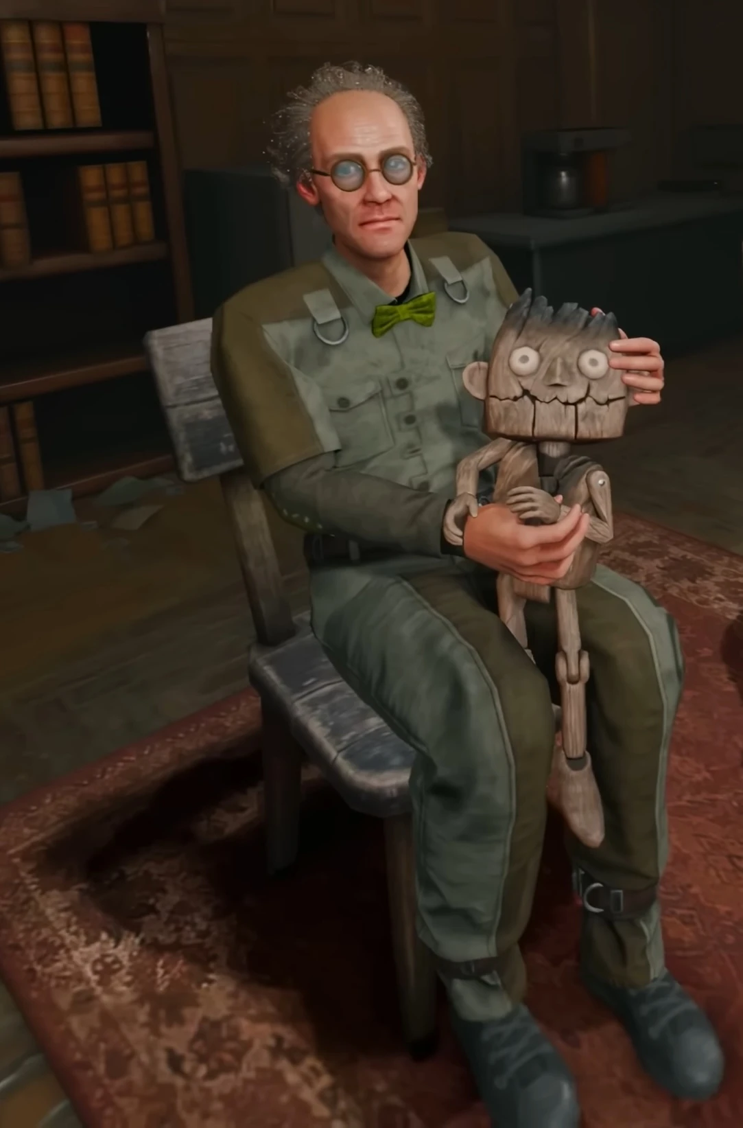 - Wesker: Well, my cellmate Donnegan, he has a puppet named Woody that’s fun to talk to sometimes.